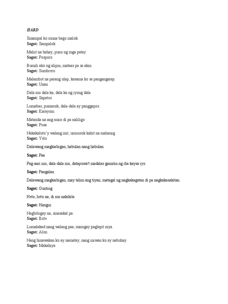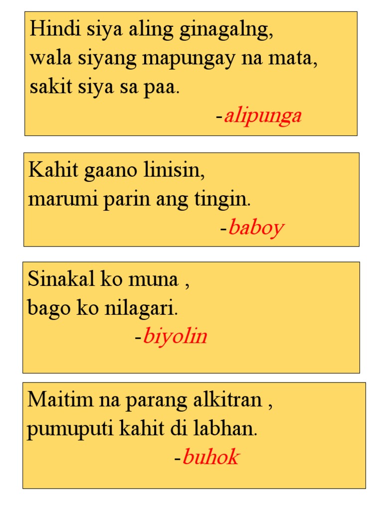 Bugtong in english examples. Facebook म Bugtong ko क धर करहर हरनहस. Madalas mamalat kase palaging dry.